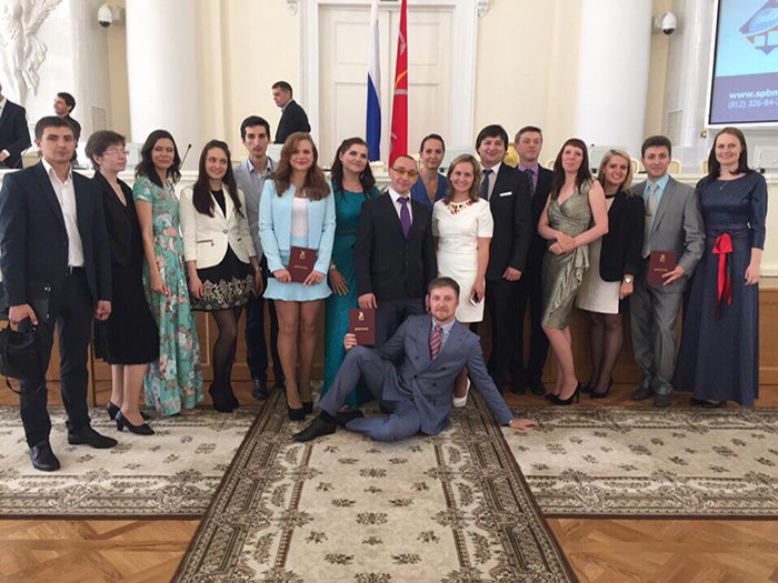 26 июня 2015 года в Смольном состоялось торжественное вручение дипломов выпускникам #Президентской_программы подготовки управленческих кадров, в том числе слушателям #ВЭШ СПбГЭУ. Выпускников поздравил вице-губернатор Санкт-Петербурга С.Н. Мовчан, директор ИДПО - «ВЭШ» Я.Я. Клементовичус, директор МРЦ Ю.А. Михайлов.