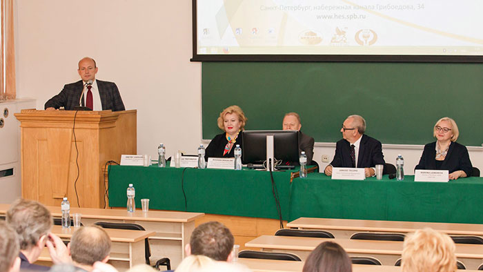 От руководства Высшей экономической школы, на базе которой была проведена конференция, с приветственным словом выступил научный руководитель ИДПО - «ВЭШ» В.П. Галенко, пожелавший участникам установления новых научно-исследовательских контактов, эффективного обмена точками зрения и плодотворных дискуссий.