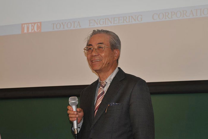 Своё выступление лектор начал рассказом об истории, основных направлениях деятельности и способах производства компании «Toyota Engineering Corporation». Затем более подробно представил основные механизмы совершенствования предприятий и застойных заводов, работы с человеческими ресурсами, а также основные обязанности надзорных органов и лидеров. Особое внимание было уделено японской философии и практике Кайдзен, концепции Just in time, системе бережливого производства Канбан и Дзидока (Jidoka).