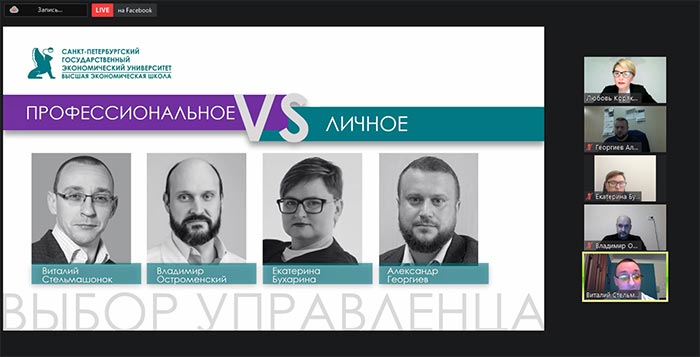 Ключевыми спикерами выступили: Владимир Остроменский, главный врач родильного дома ООО «АВА-Петер» (сеть клиник «Скандинавия»), победитель конкурсов «Лидеры России» (2019 год) и «Лидеры России-Здравоохранение» (2020 год), Екатерина Бухарина, генеральный директор ООО «Лидер-Абсолют», участница стажировок в Германии (2017 год) и Японии (2018 год), Александр Георгиев, главный конструктор машиностроительного завода «АРСЕНАЛ», Виталий Стельмашонок, куратор Президентской программы подготовки управленческих кадров для организаций народного хозяйства РФ от СПбГЭУ.