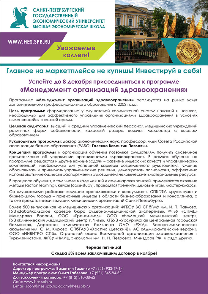 Продолжается набор слушателей на программу профпереподготовки «Менеджмент организаций здравоохранения»
