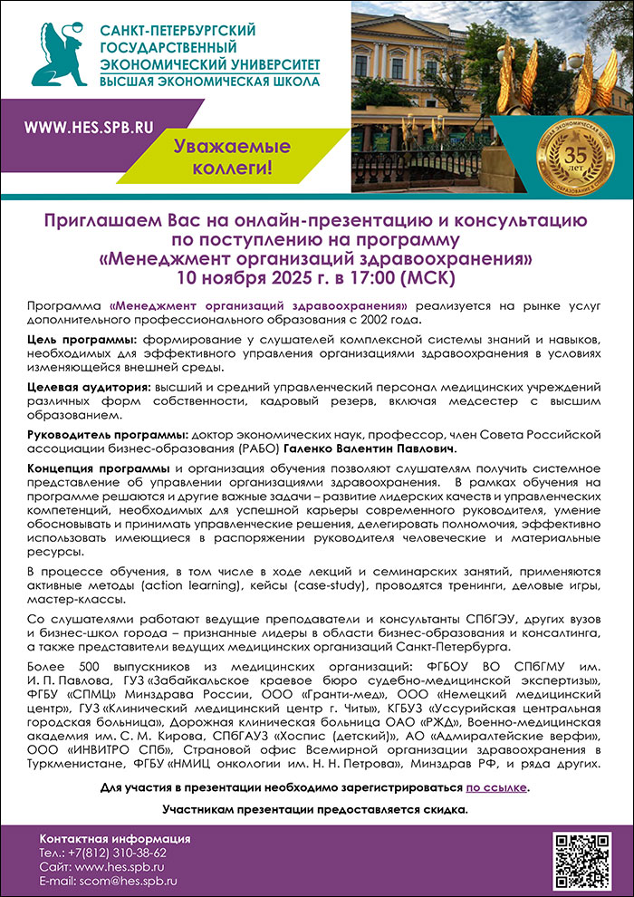 Презентация программы профессиональной переподготовки «Менеджмент организаций здравоохранения» |